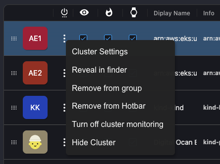 2. **HotBar:** This setting allows you to determine whether a cluster is included in the detail cluster hotbar. The hotbar is an icon list on the detail view that allows us to navigate to a cluster without leaving the detail view.