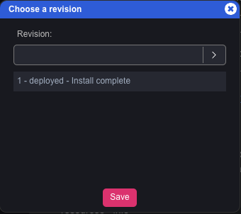 To rollback a release to a previous version, click on the rollback button, and in the rollback dialog, select the version you want to rollback to.