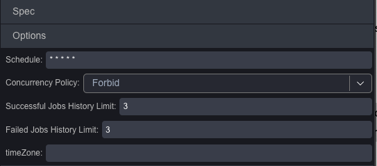 7. Cron Options:(only for CronJobs) Allow and help to set all of the options of a cronJob.