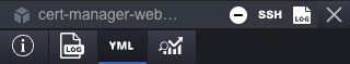 Using the side editor, the user can click on "SSH" to connect to the selected Pod via SSH. If the Pod has more than one container, a modal will appear to choose which container to connect to.